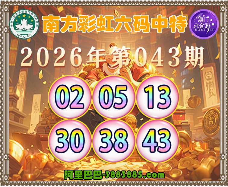 043期: 👛『南方彩虹』 👛六码中特👛【02.05.13.30.38.43】开:13