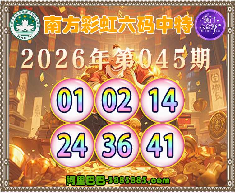 045期: 👛『南方彩虹』 👛六码中特👛【01.02.14.24.36.41】开:01