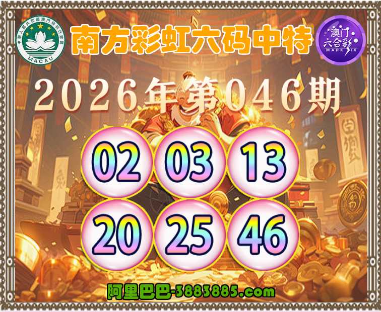 046期: 👛『南方彩虹』 👛六码中特👛【02.03.13.20.25.46】开:03
