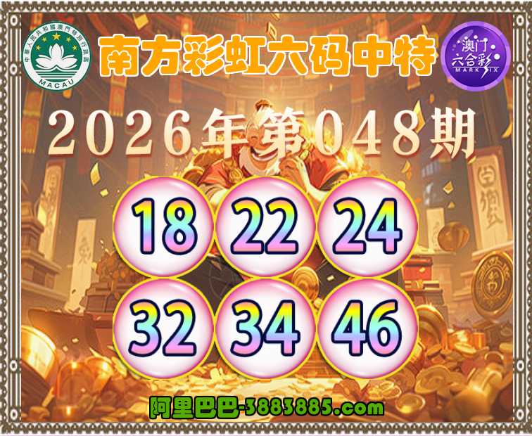 048期: 👛『南方彩虹』 👛六码中特👛【18.22.24.32.34.46】开:24