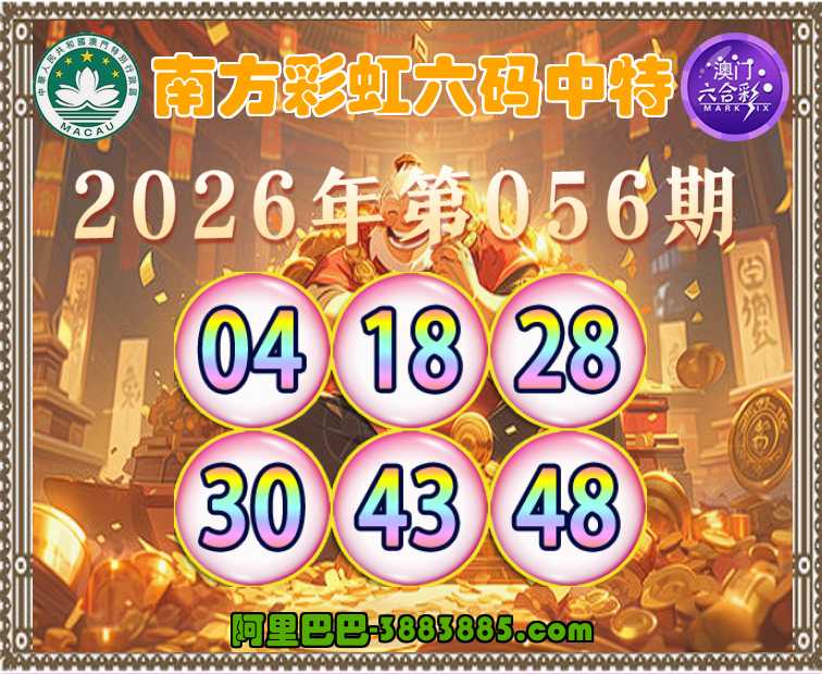 056期: 👛『南方彩虹』 👛六码中特👛【04.18.28.30.43.48】开:48