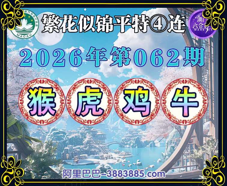 062期:『繁花似锦』 🥰平特④连🥰【猴虎鸡牛】开:猴35,虎29,鸡46,牛06