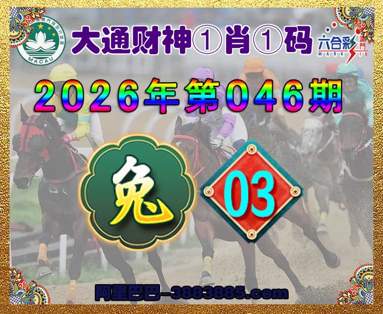 046期:《大通财神》 😜①肖①码😜【】【03】开:兔03