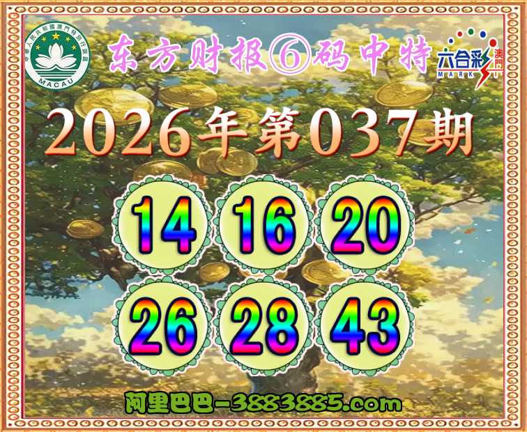 037期:《东方财报》 🤩⑥码中特🤩【14.16.20.26.28.43】开:43