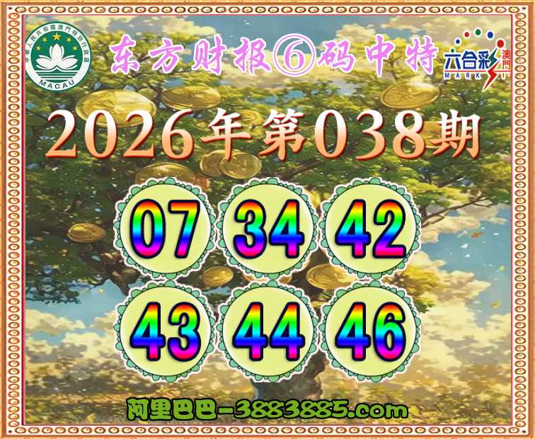 038期:《东方财报》 🤩⑥码中特🤩【07.34.42.43.44.46】开:42