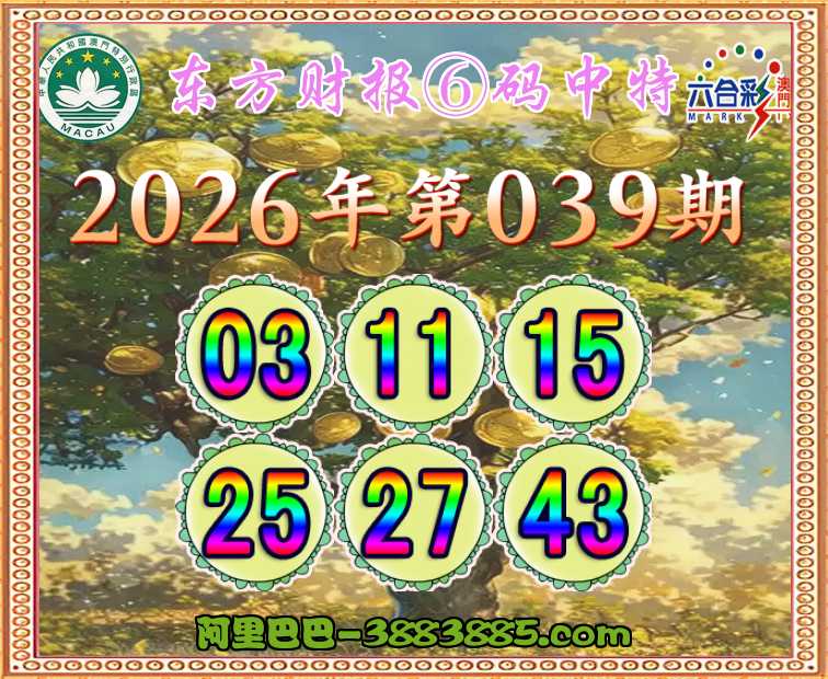 039期:《东方财报》 🤩⑥码中特🤩【03.11.15.25.27.43】开:11