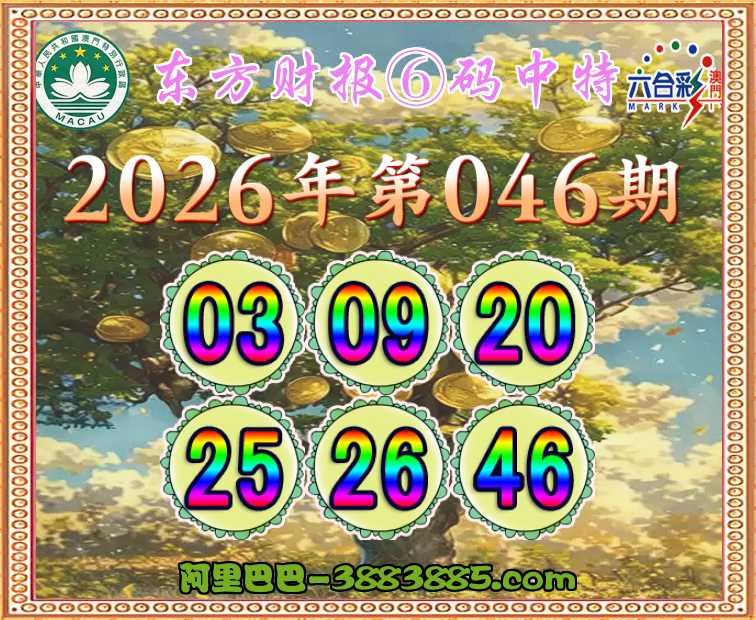 046期:《东方财报》 🤩⑥码中特🤩【03.09.20.25.26.46】开:03