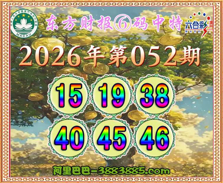 052期:《东方财报》 🤩⑥码中特🤩【15.19.38.40.45.46】开:38
