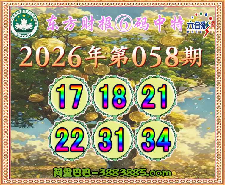 058期:《东方财报》 🤩⑥码中特🤩【17.18.21.22.31.34】开:31