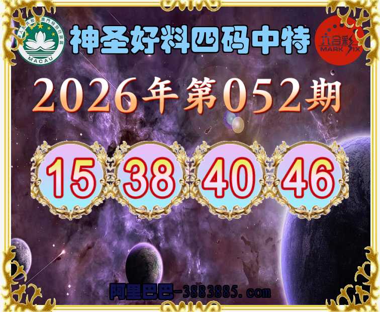 052期:『神圣好料』  ♣️四码中特 ♣️【15.38.40.46】开:38