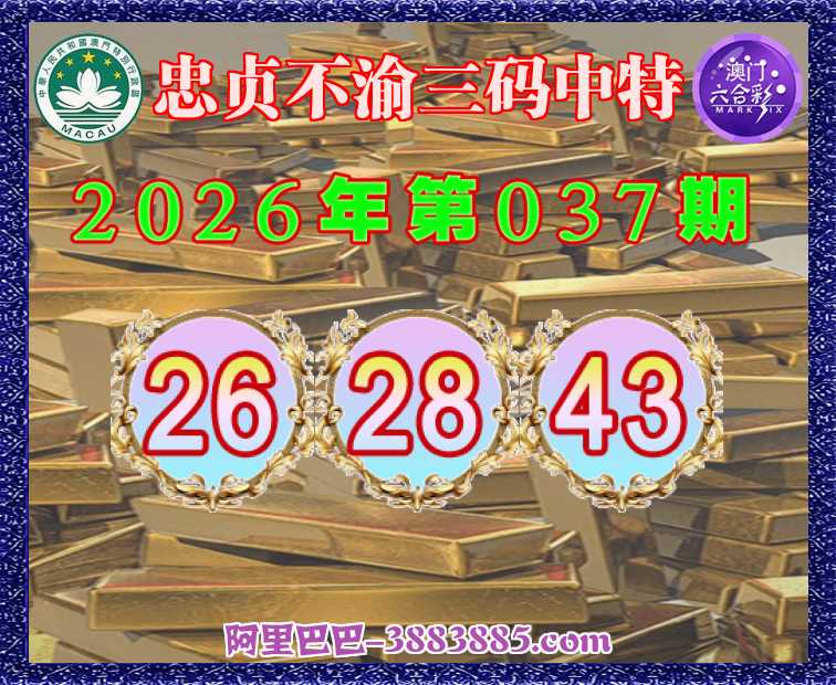 037期:《忠贞不渝》 ♠️三码中特♠️【26.28.43】开:43