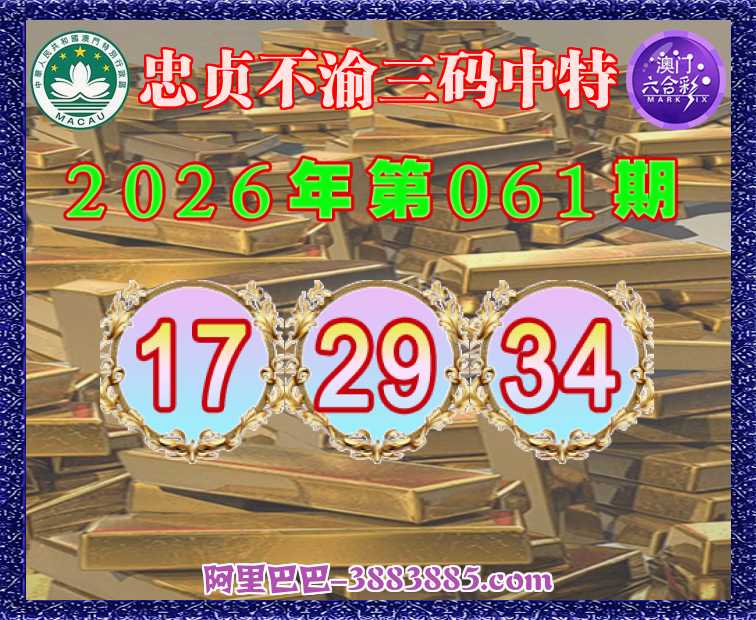 061期:《忠贞不渝》 ♠️三码中特♠️【17.29.34】开:29