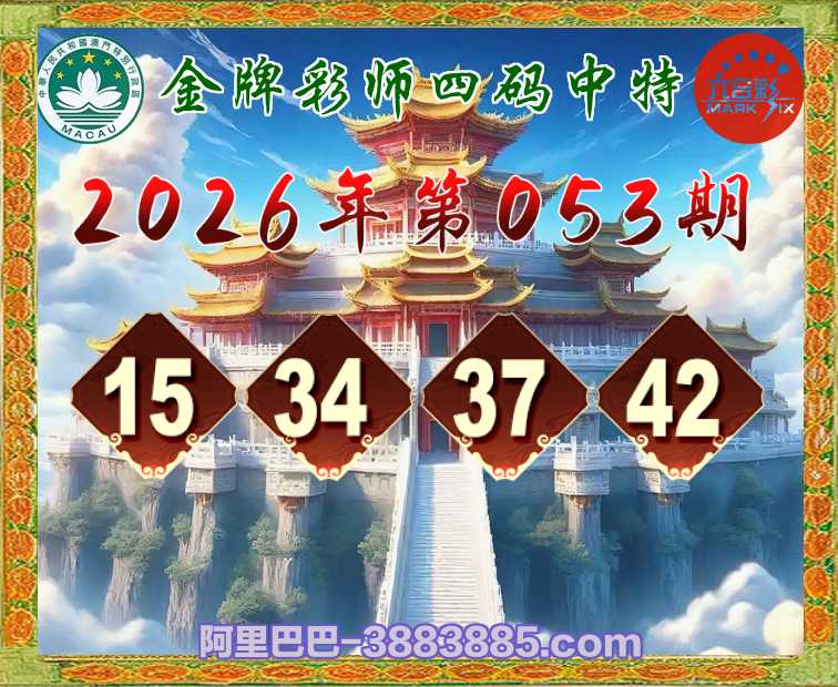 053期: 🌷『金牌彩师』 🌷四码中特🌷【15.34.37.42】开:15