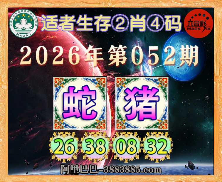 052期: 适者生存 🗡②肖④码🗡【猪】【26.38.08.32】开:蛇38