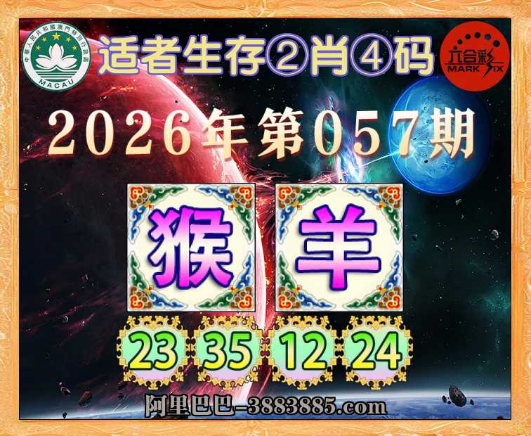 057期: 适者生存 🗡②肖④码🗡【羊】【23.35.12.24】开:猴23