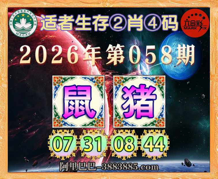 058期: 适者生存 🗡②肖④码🗡【猪】【07.31.08.44】开:鼠31