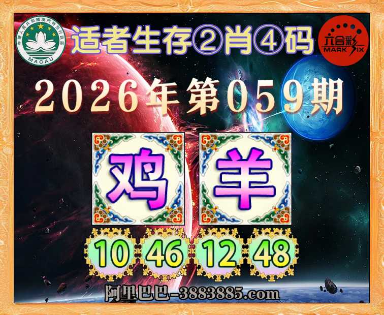 059期: 适者生存 🗡②肖④码🗡【羊】【10.46.12.48】开:鸡10