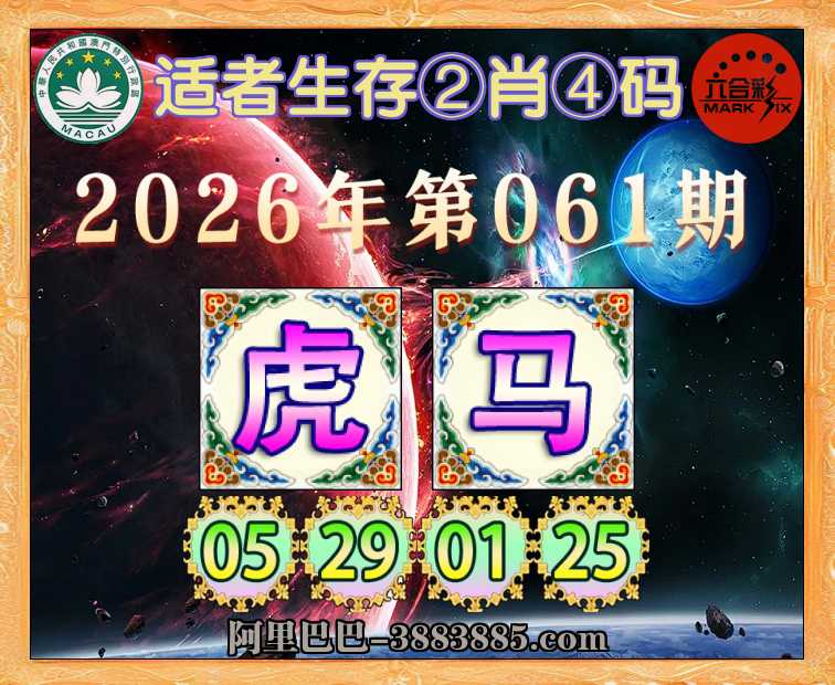 061期: 适者生存 🗡②肖④码🗡【马】【05.29.01.25】开:虎29