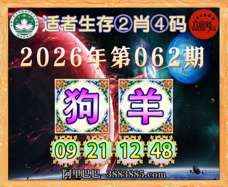 062期: 适者生存 🗡②肖④码🗡【狗】【09.21.12.48】开:羊24