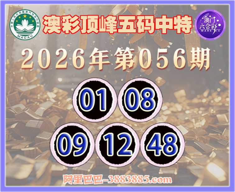 056期:【澳彩顶峰】 👘五码中特👘【01.08.09.12.48】开:48