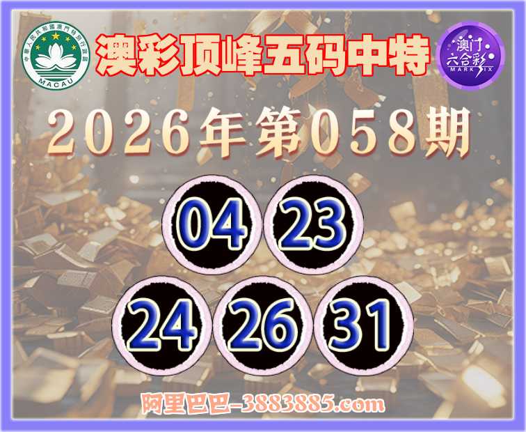 058期:【澳彩顶峰】 👘五码中特👘【04.23.24.26.31】开:31