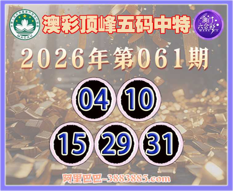 061期:【澳彩顶峰】 👘五码中特👘【04.10.15.29.31】开:29